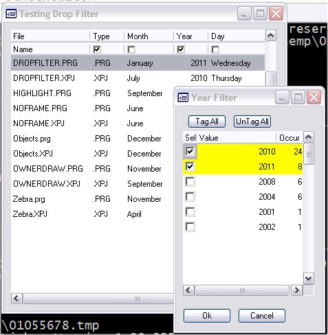 Here is a sample program that demonstrates how to create a "drop filter" system for an array browse.